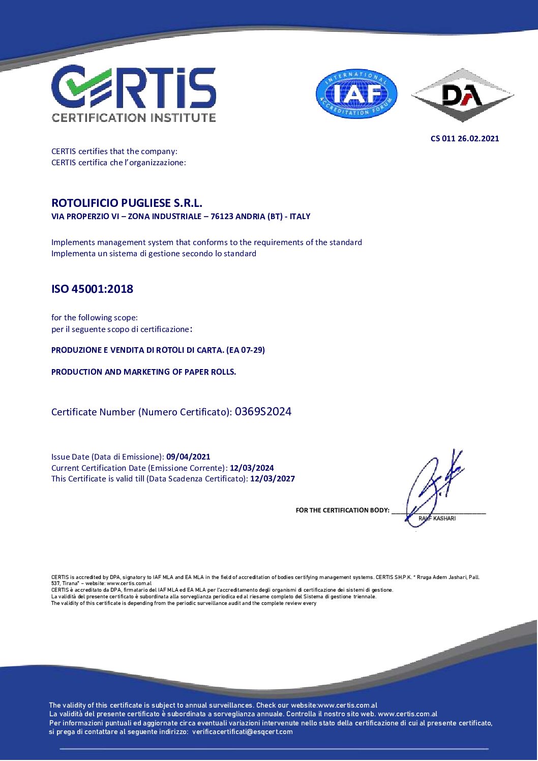 ISO 9001, ISO 14001, ISO 45001, ISO 50001 e FSC®.
